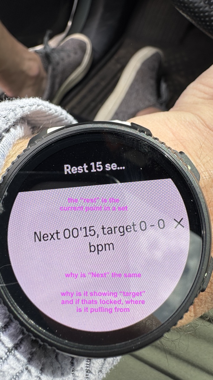 I finally reached a solution I’m happy with for the PREV INT panel: bigger text, three values shown at the same time, and rotation between distance and average HR. Check out version 1.5!
