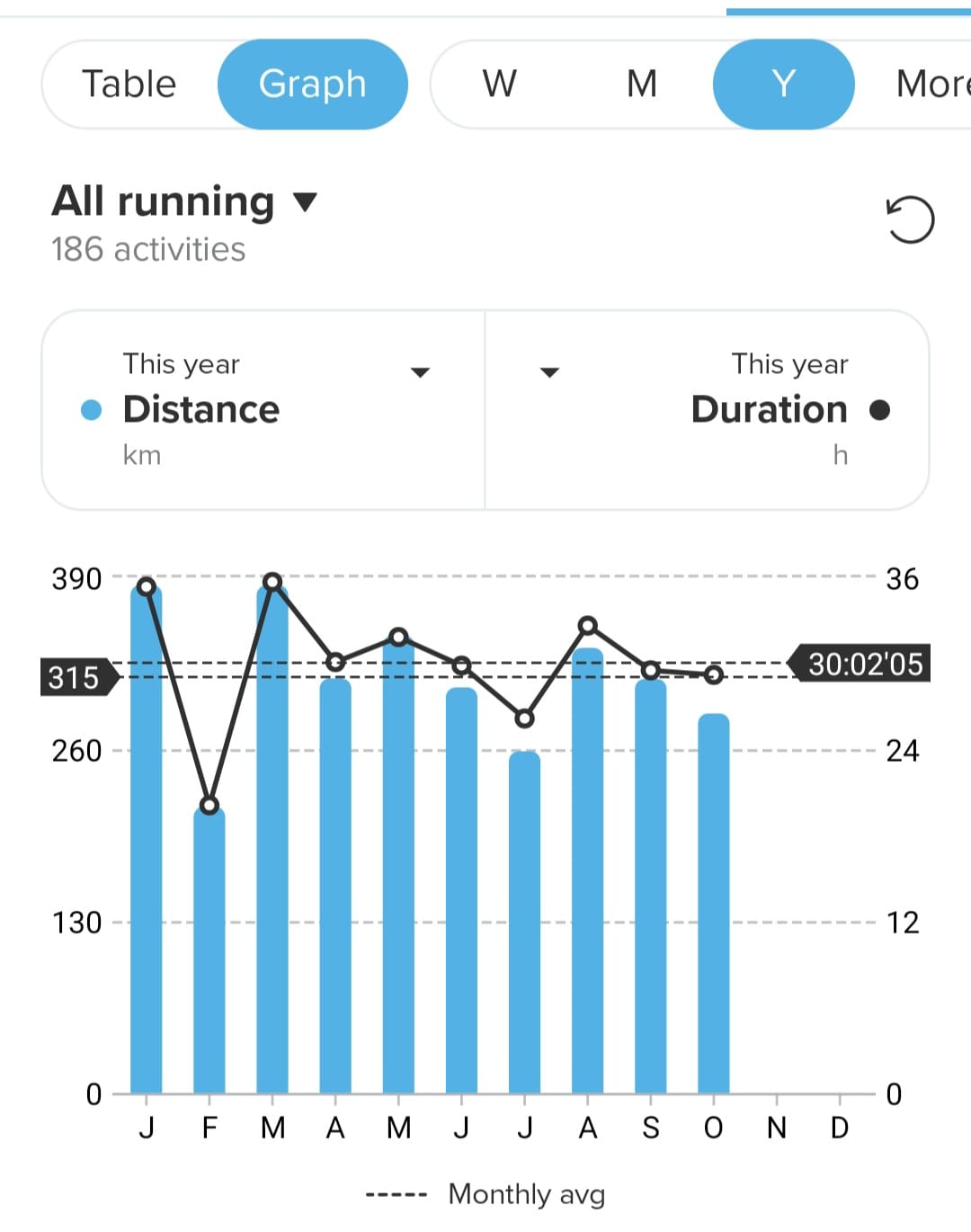 Distance 20.5 km This looks more like 287 km ran so far in October / 14 activities recorded in October
