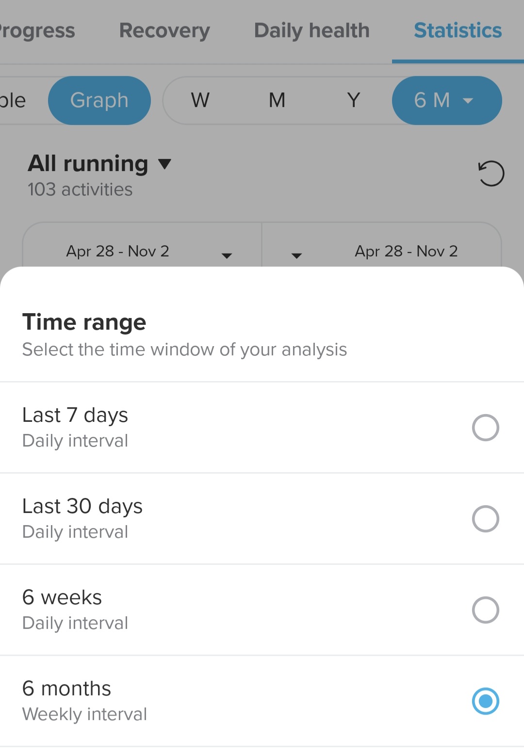 I should be able to choose “weekly interval” not only for the 6 months time range
