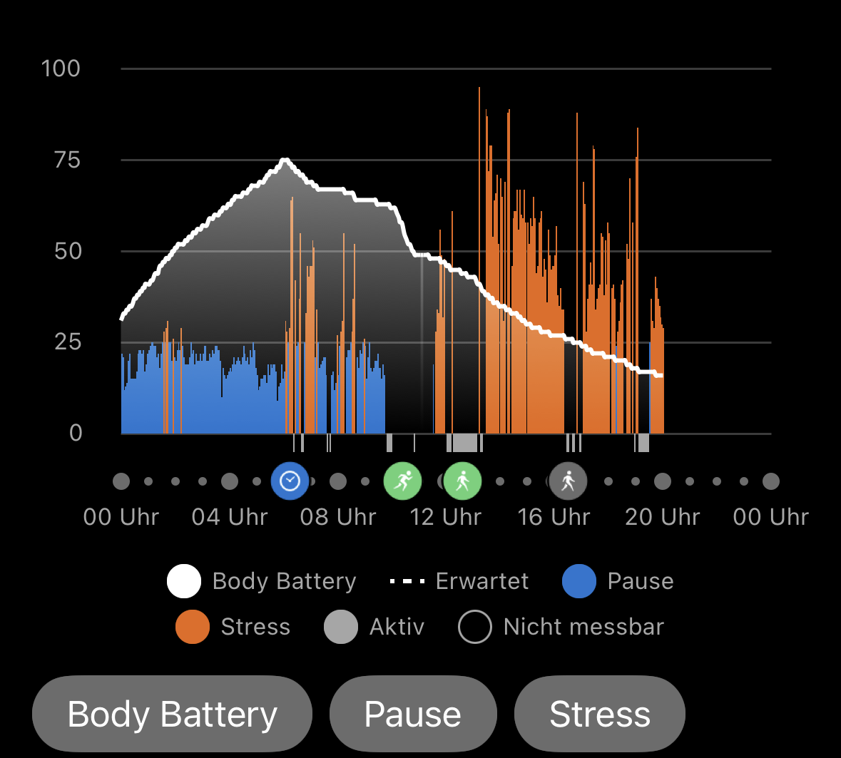 Lately I have recovery almost all the time. The other day I felt a bit ill and have gone to bed early. Garmin did reflect this quite well. And today has been filled with stressful moments and I see this in Garmin: