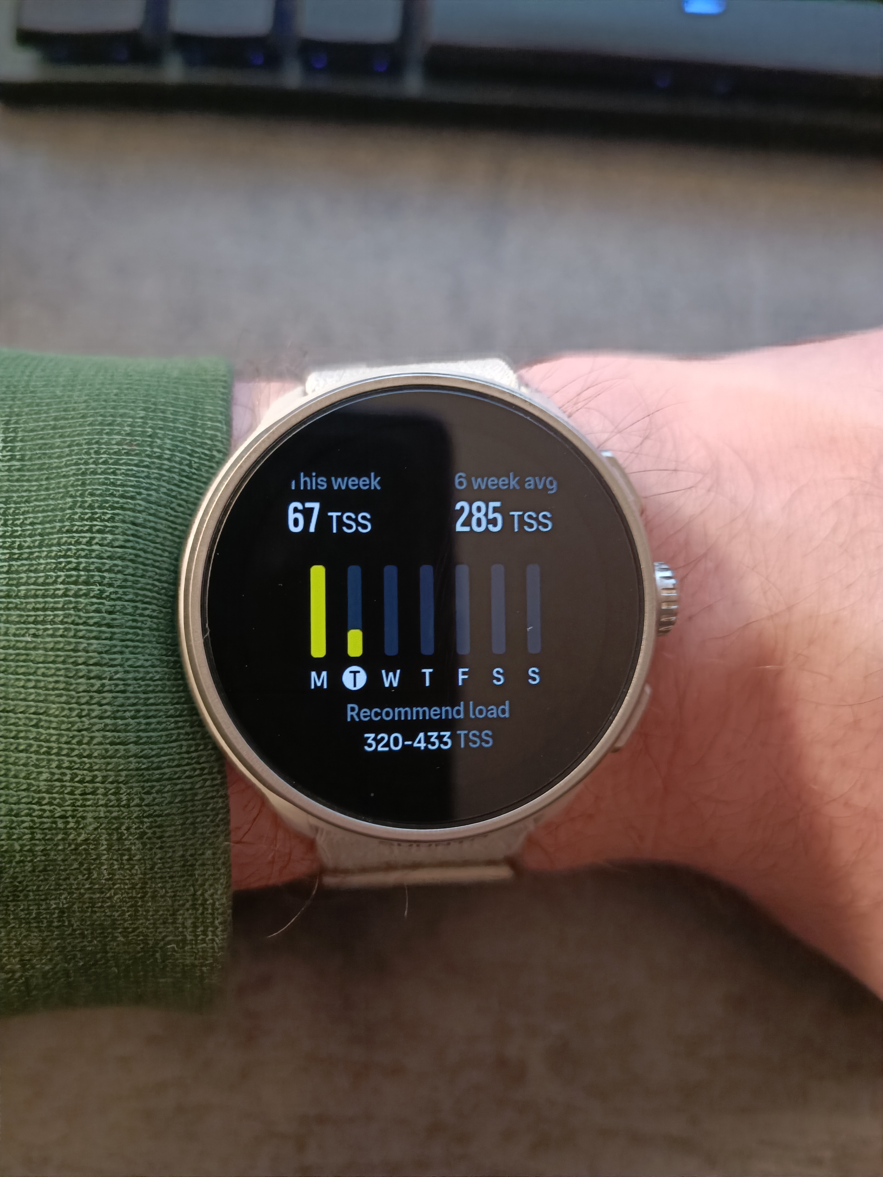 For the watch itself, the TSS has the same issue as the one in the app. It only display a 15 TSS instead of the 84 that it should. However, the path seems to display correctly.