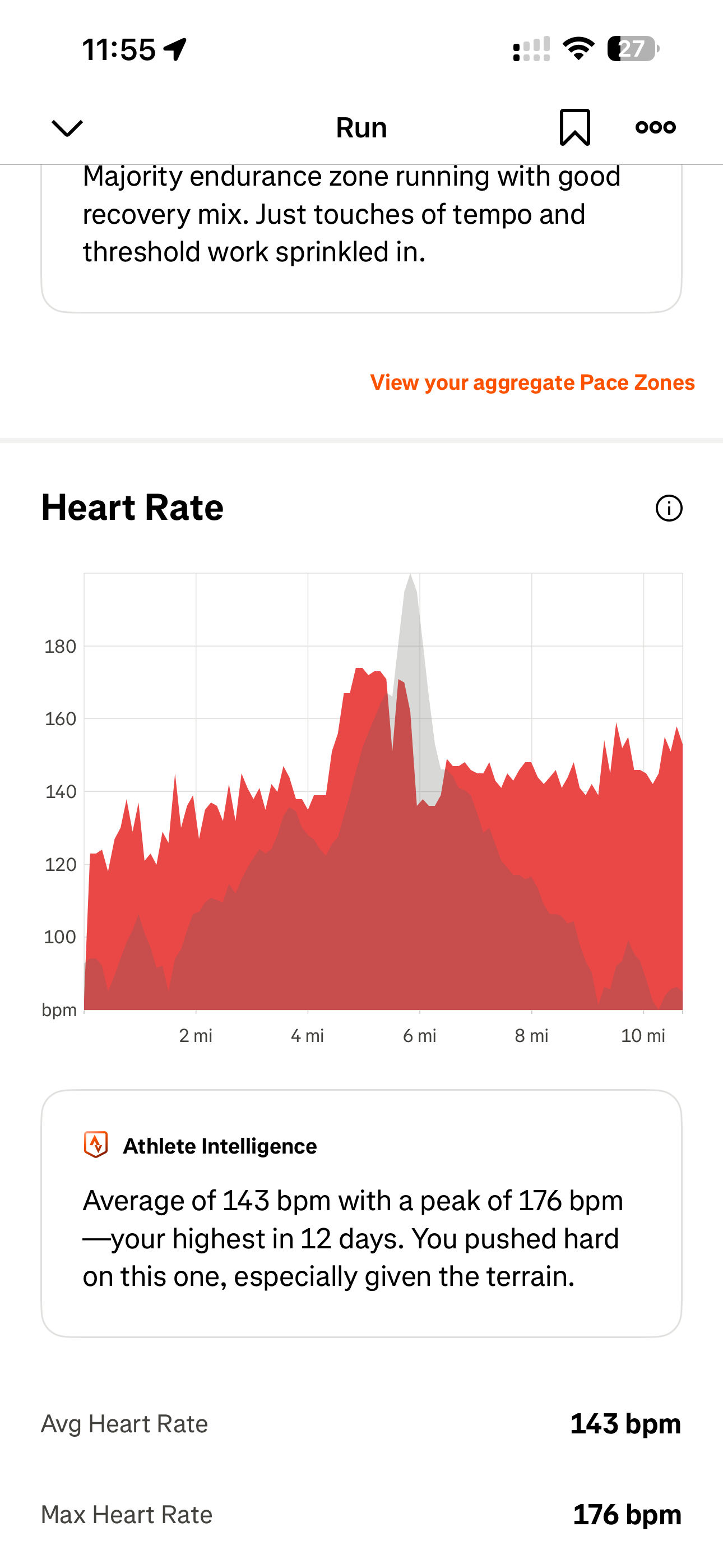 I did a 10 mile run, first 5 miles were climbing, then a 300 foot hill effort then the final 4 miles were downhill.