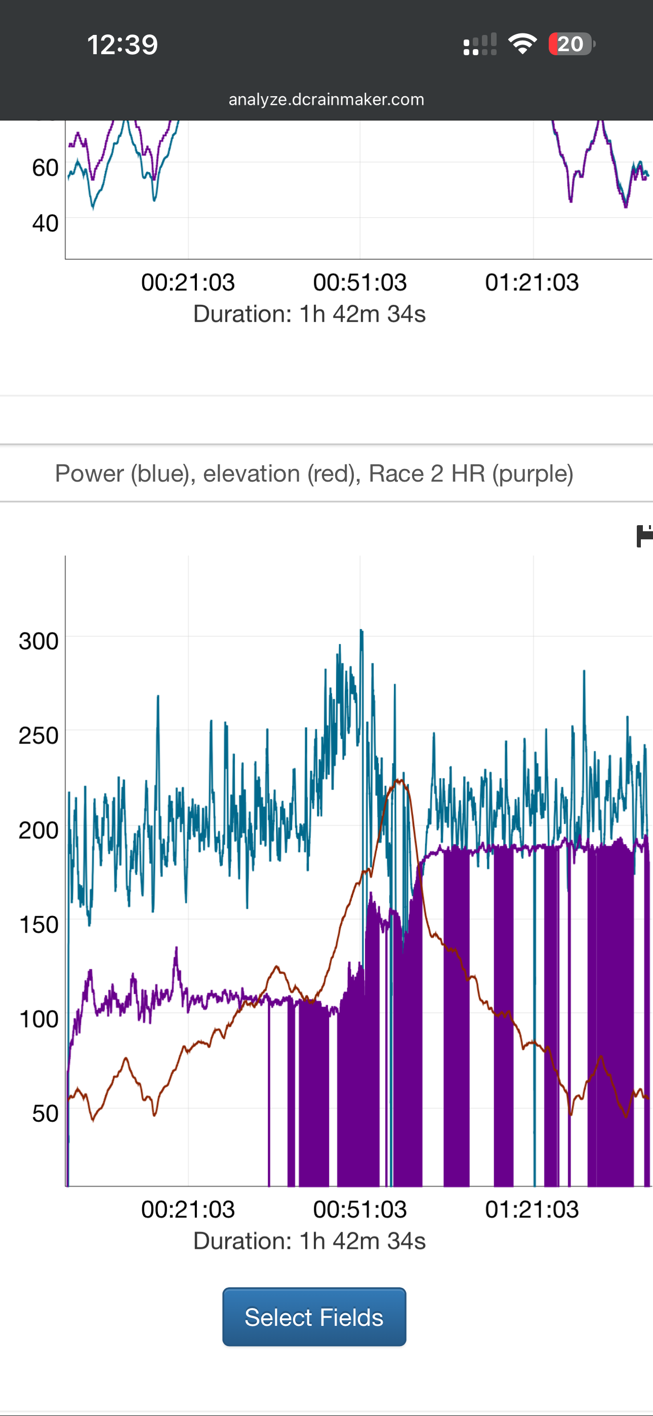 This shows the elevation profile and actual HR from the watch