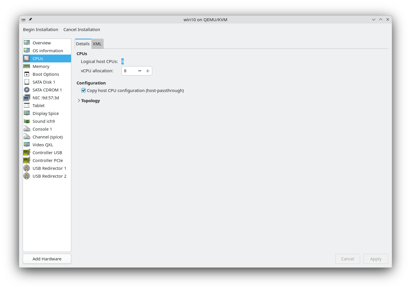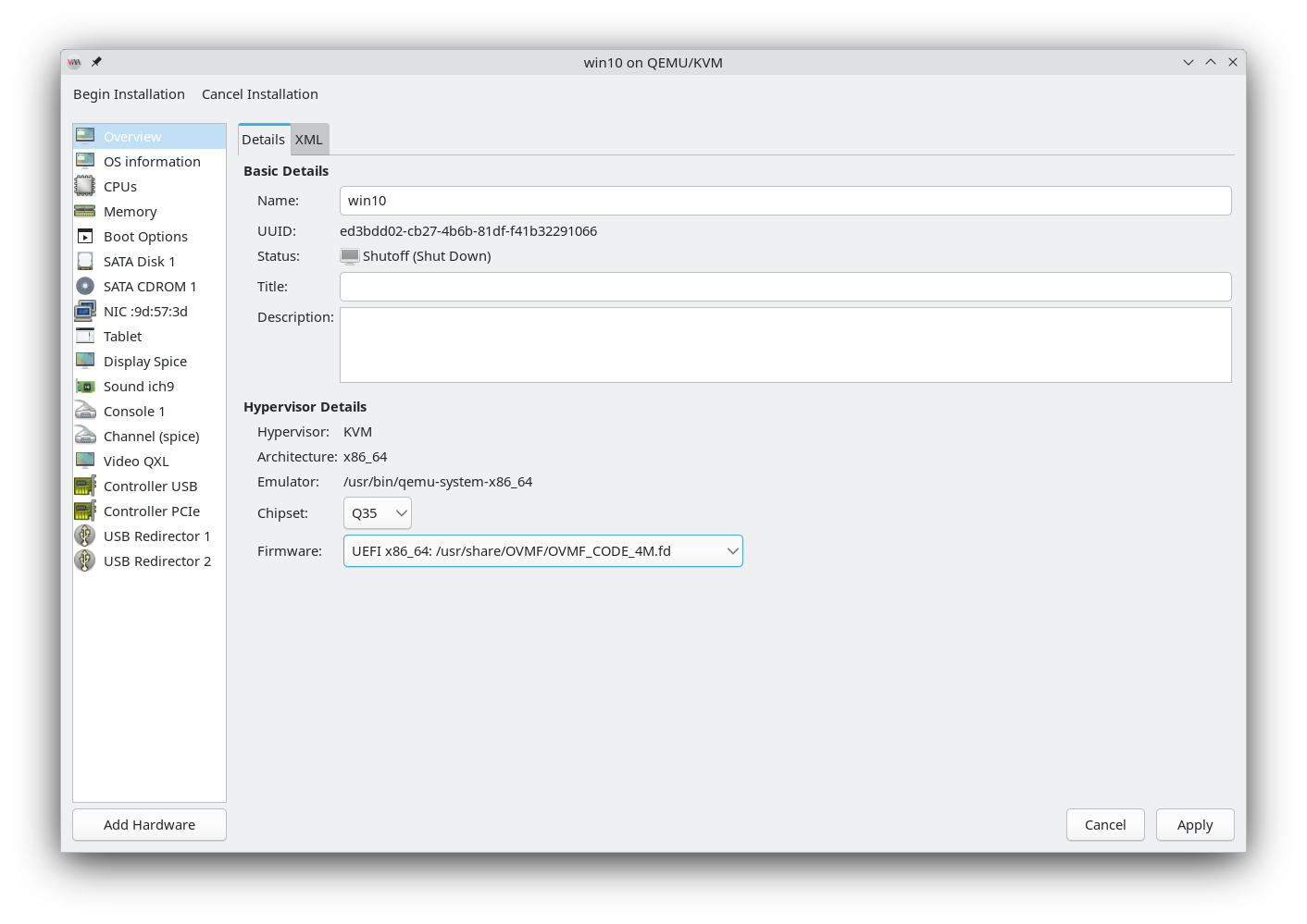 You can now begin installation! Beware that there will be a ‘‘quick time event’’ when the VM boots where you need to click any key to boot the iso. Miss it and you will need to reboot the VM for a second chance.