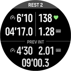 I finally reached a solution I’m happy with for the PREV INT panel: bigger text, three values shown at the same time, and rotation between distance and average HR. Check out version 1.5!