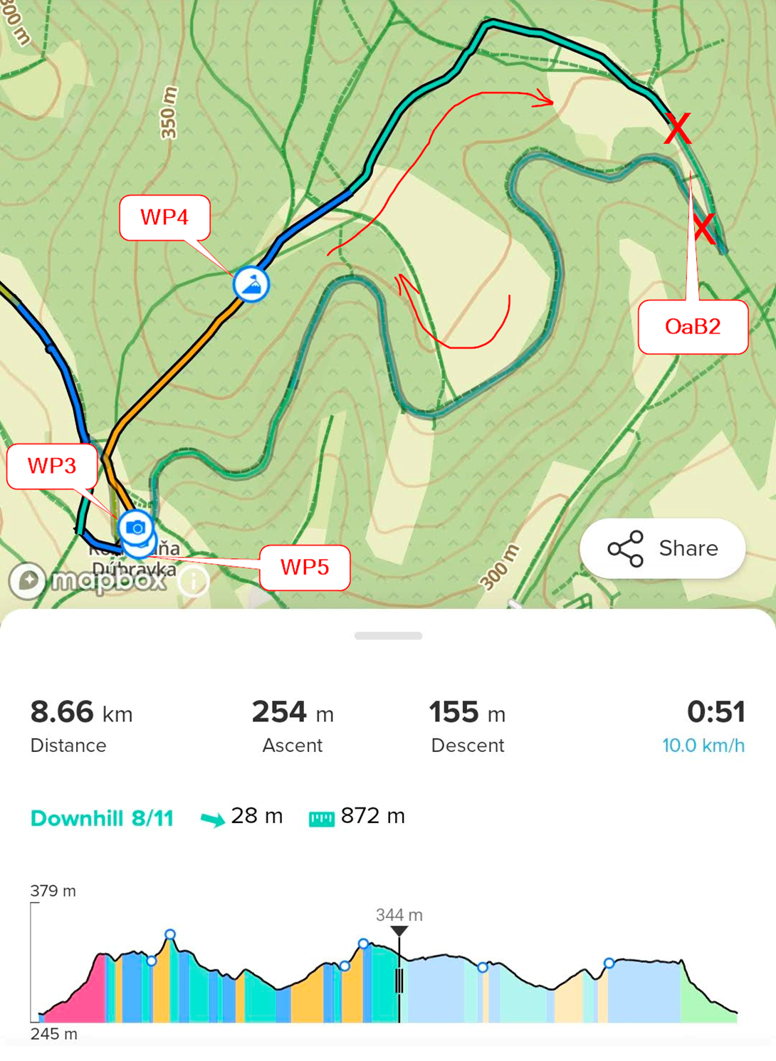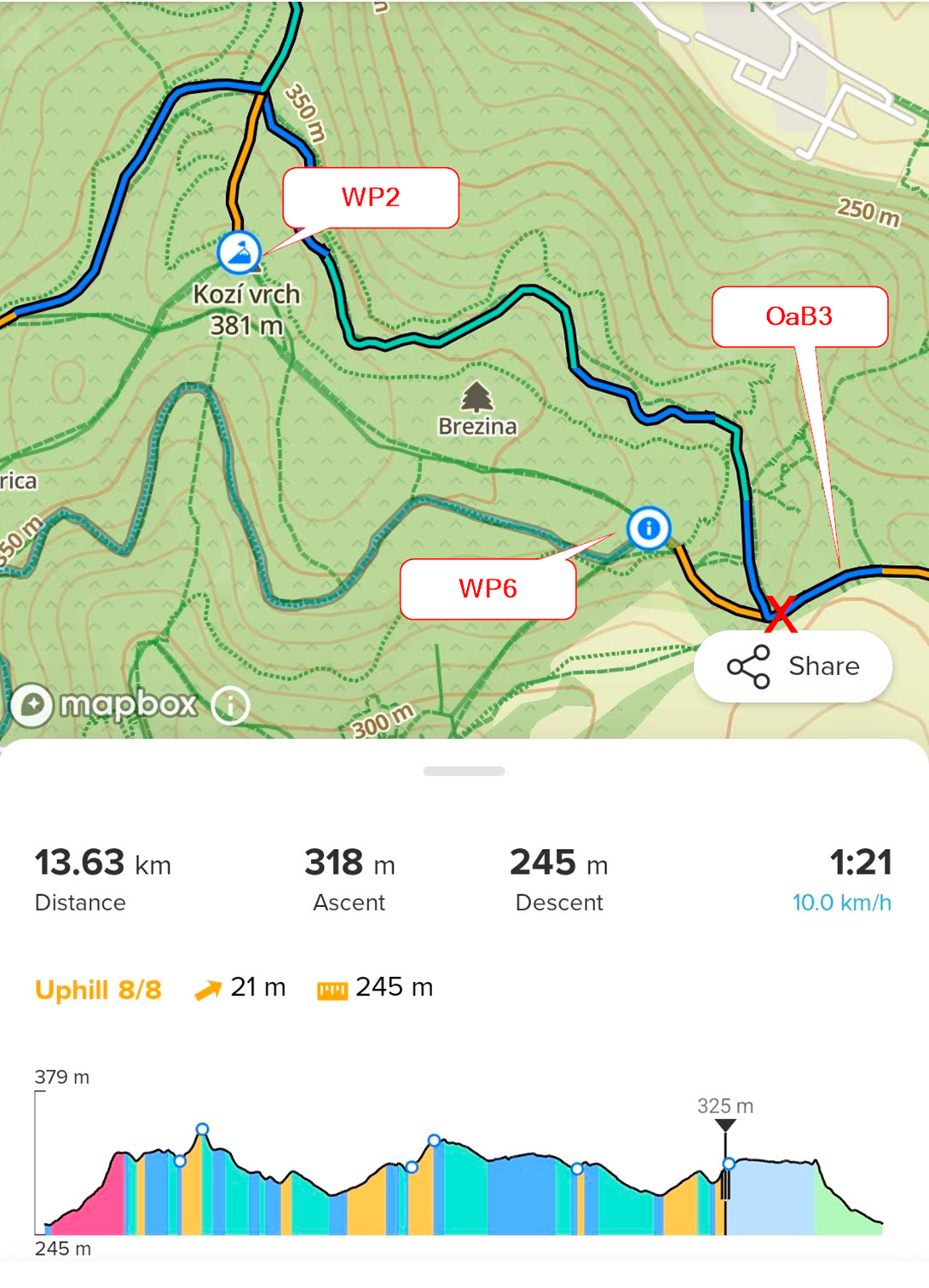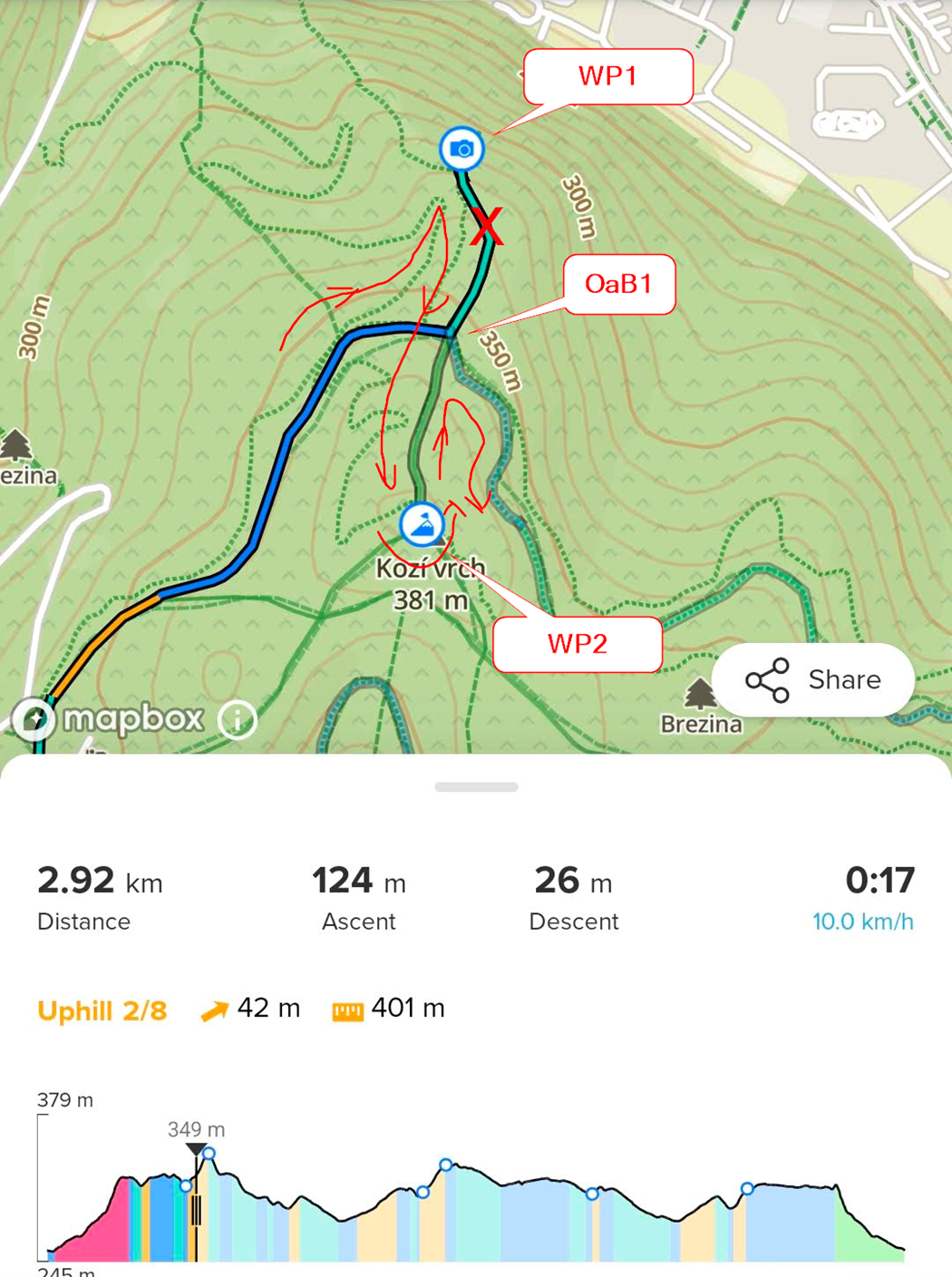 - OaB4: Running downhill to finish. I even got the notification for steep downhill section. But the watch showed the A - WP1 profile.
