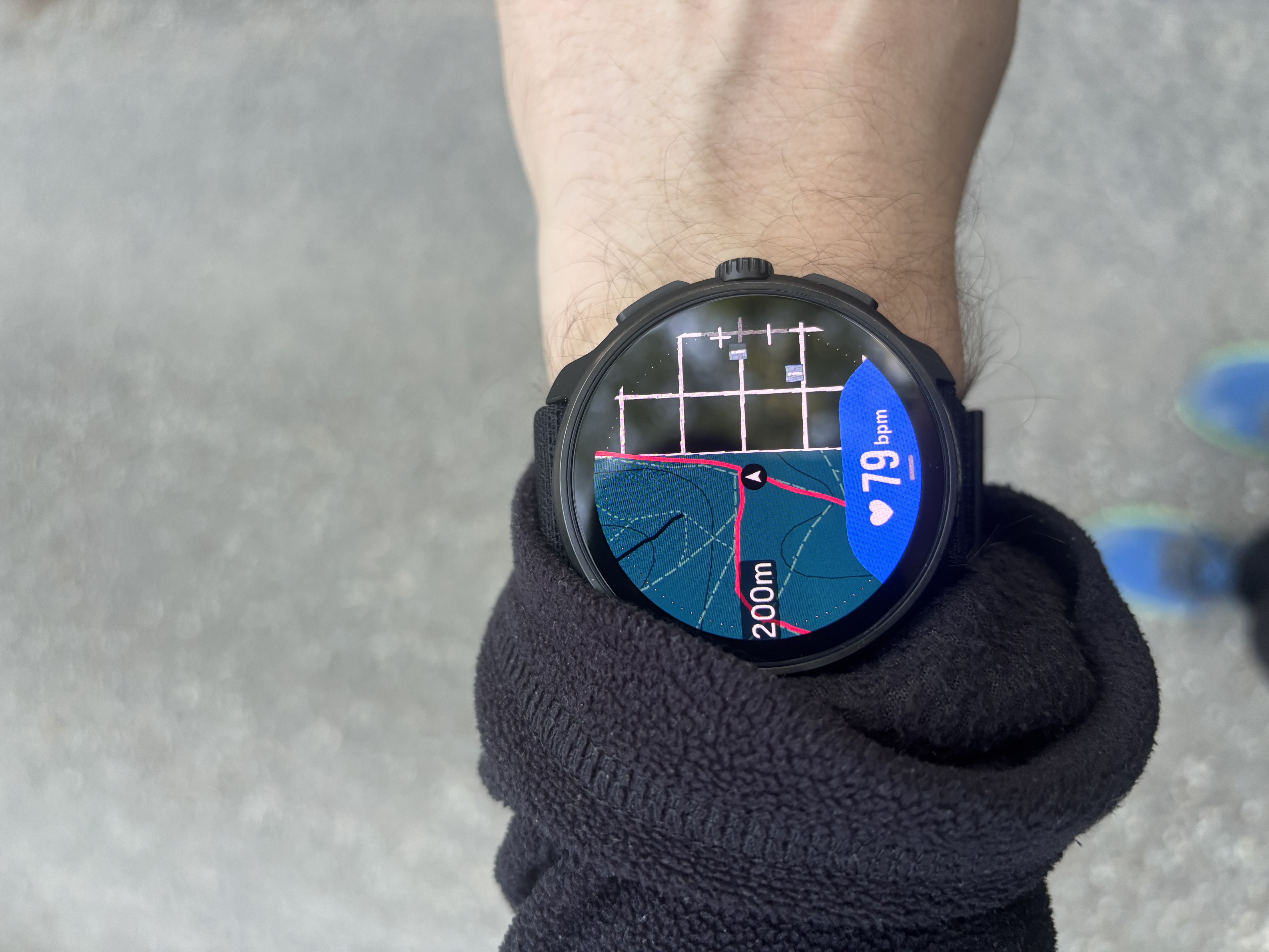 I have had also a problem with the navigation itself, where the arrow was not always pointing into the direction, but it was jumping around and couldn’t stabilize. I assume it has something to do with a lot of building being around, but I have been in many such places and never had any issues. In the app the GPS track of the activity is also not very straight, it’s jumping here and there.